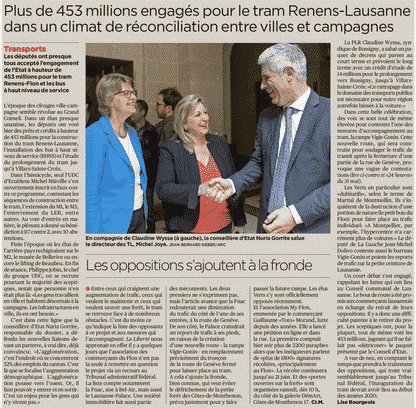 Le Grand Conseil Vaudois, grâce notamment à l’engagement de notre syndique Claudine Wyssa a accepté 453 millions pour le tram Lausanne – Renens et avec un […]